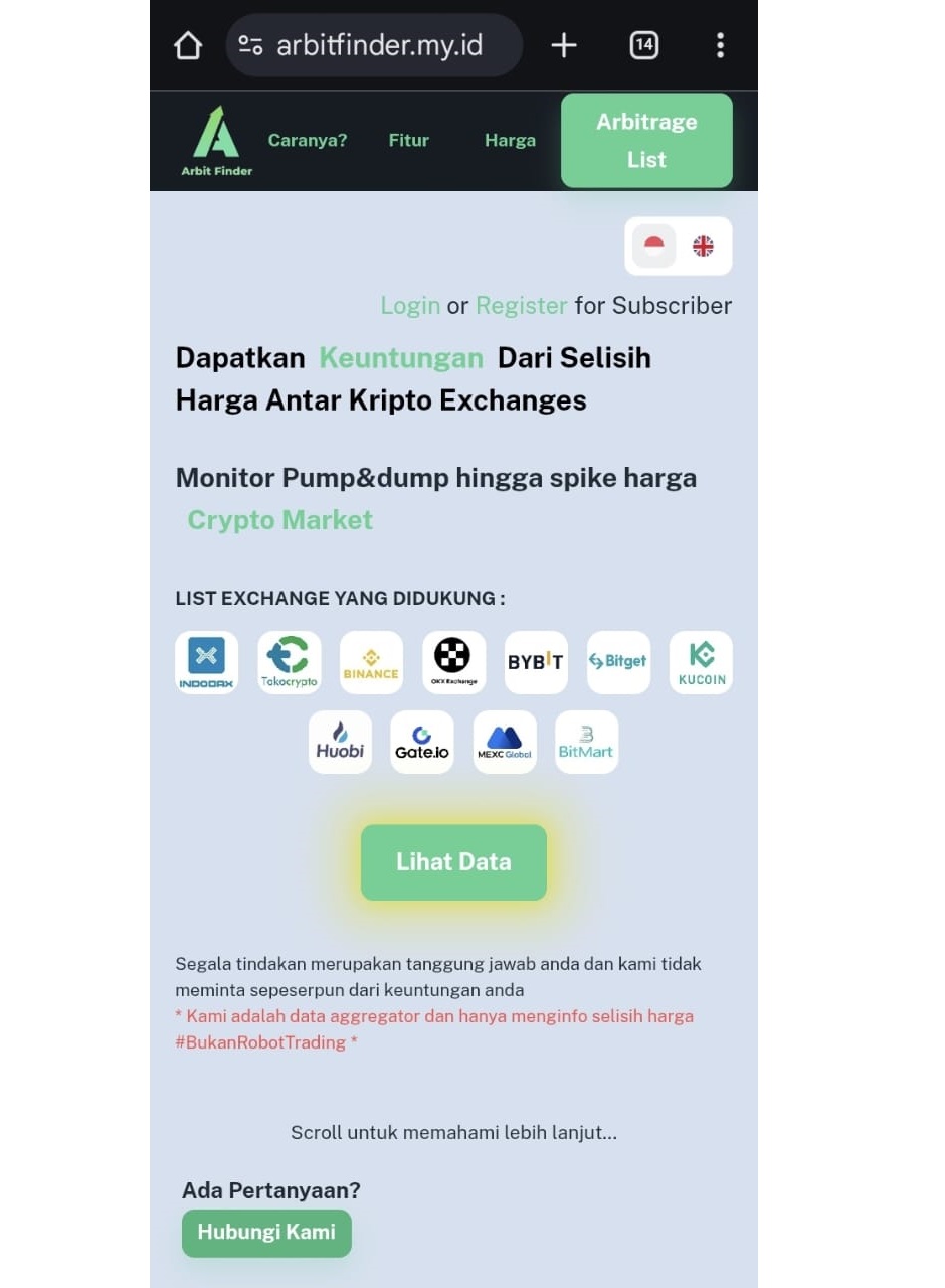 Aplikasi monitor perbedaan harga antar market kripto